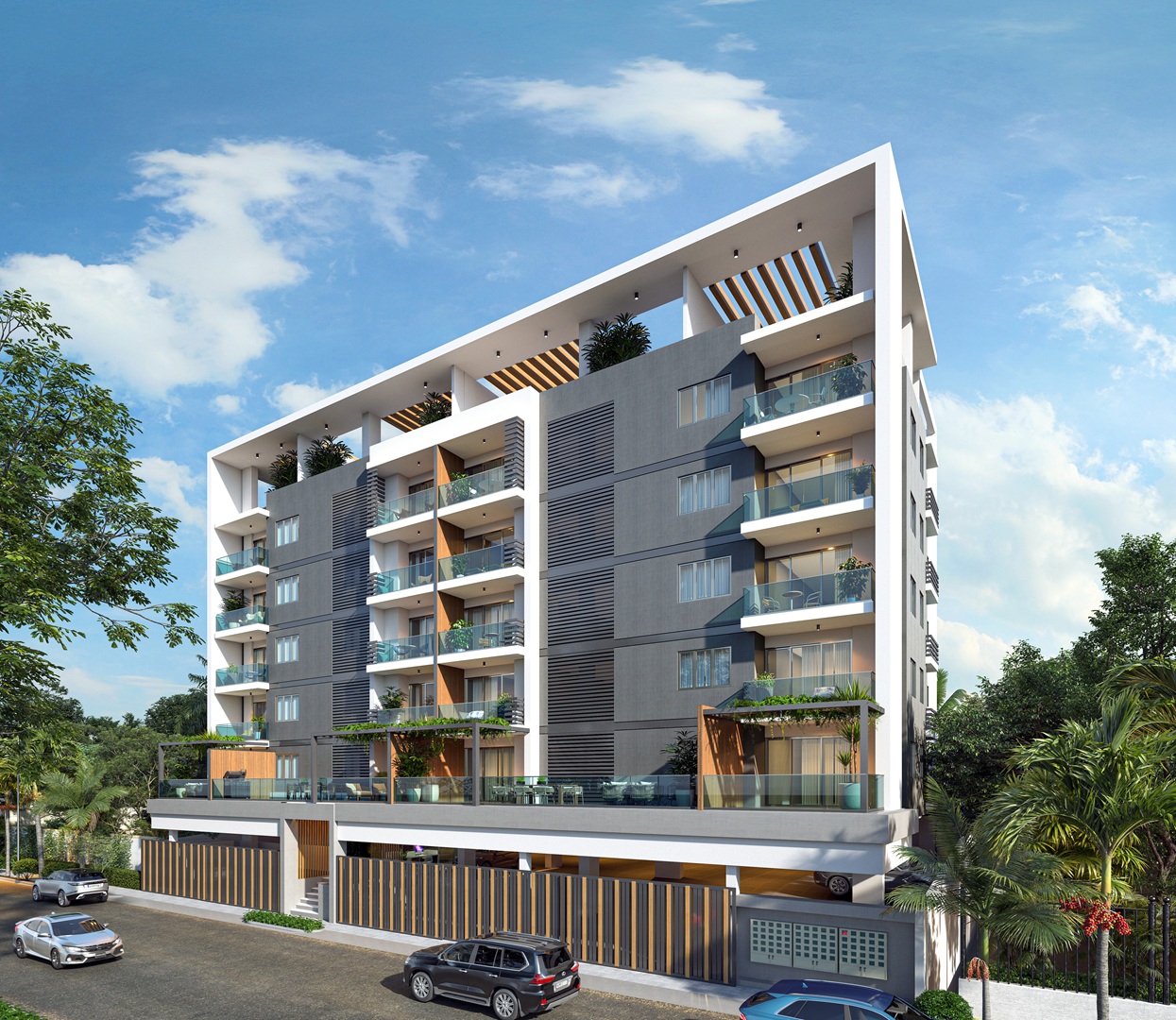 Diseñado para quienes buscan establecerse en Santo Domingo con tranquilidad, este residencial ofrece apartamentos amplios con excelente entrada de luz natural y terrazas privadas pensadas para la convivencia familiar.